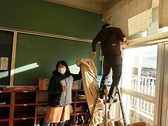 年末大掃除と新型コロナウィルス感染予防を兼ねて,事務の染谷さんと用務員の中野さんが,学校中のカーテンを洗濯してくれています。