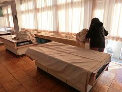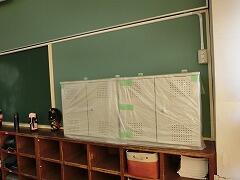 洗濯した後にすぐに教室に戻すことで,半日もあれば乾いてしまいます。中野さんは,ボロボロになっている部分を縫ってくれていました。