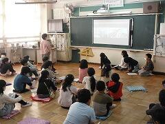 身体測定の前に,養護教諭の宮川先生が石鹸で手を洗うことの大切さを写真を見せながら話してくれました。