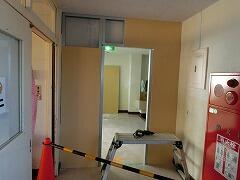 体育館側のトイレ工事が着々と進んでおります。東側の階段は封鎖されています。体育館への通路も資材置き場と変わっています。