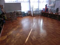 卒業式準備のために,5年生が体育館の大掃除とワックスがけを行いました。