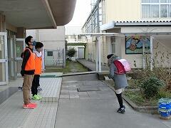 にっこり笑顔であいさつ運動をする児童会