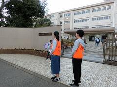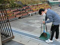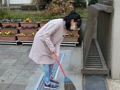 正門の前や校庭の落ち葉をきれいに掃除する環境委員