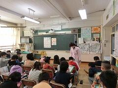 その次に,ゲストティーチャーとして参加した養護教諭の宮川先生から「ばい菌は,どのくらいいるかな?」のクイズが出されました。