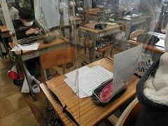 各自,自分の飛散防止シートを持って委員会の教室に移動して,振り返りと次年度への引継ぎ事項などの確認を行いました。