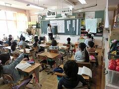 柏市では,教育委員会のITアドバイザーさんによる「各学年に応じたコンピュータリテラシー到達のためのパッケージ授業」を行っています。担任の先生とITアドバイザーさんで役割分担を行い、全校同じプログラムで行います。