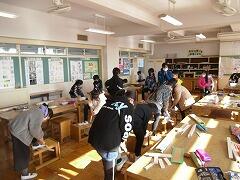 6年生が早帰りする中…5年生と先生達がみんなで翌日の卒業式のために,掃除・装飾など一生懸命に準備をしてくれました。
