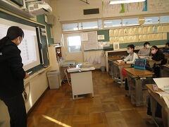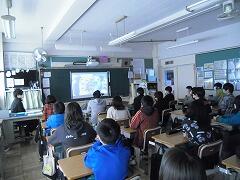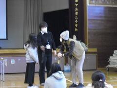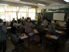 2年生は1クラス,1年生は2クラスなので,2年生が両方のクラスに分かれてクイズを出したり,説明をしたりしていました。
