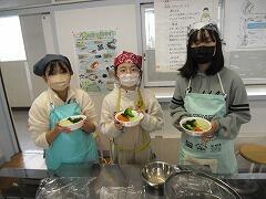 みんなで協力しながら野菜をゆでて,ドレッシングも手作りです。