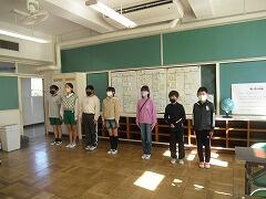 全体会は,5年生の新児童会役員が中心になって進めました。Googleを使ってオンラインで各クラスとよもーくんをつなぎました。最近は,よもーくんがオンラインスタジオとなっています。まずは,1~5年生まで分担して作ったプレゼントを紹介しました。その後の全校合唱は,窓を全開にして,全校で歌詞を心に浮かべながらハミングとしました。