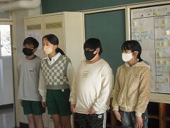 生徒指導主任の久保田先生からは,「冬休み中に大切にしてほしいもの2つ①時間②お金」のお話がありました。どんなお話だったのか,ご家庭で話題にしていただけるといいですね。最後に2学期でお別れするお友だちの挨拶もありました。