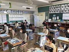 来週,書道の先生に来ていただいて「書初め練習会」が行われます。その前に,クラスごとにも書写の時間を使って練習をしています。