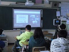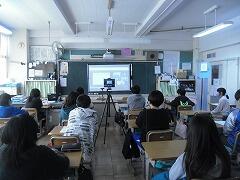 ハウリングを防ぐために,教室と図書室を使って,6グループに分かれて行いました。他の学校との交流は初めてだったので,みんなとても楽しかった!!と言っていました。
