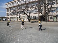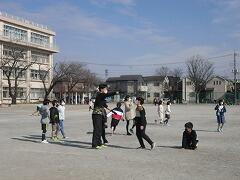 動画を全部見終わってから,1年と6年だけ校庭に集まって,直接プレゼントを渡しました。1年生は,大好きな6年生と一緒に遊んで,大喜びをしていました。