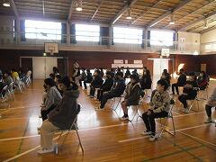 生徒指導主任の久保田先生から「春休み中に3つの準備を」,校長から卒業式で話した「ATM」のお話がありました。みんな,教室で真剣に聞いてくれていました。