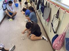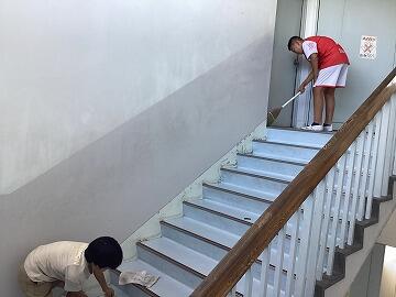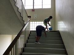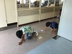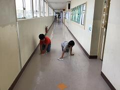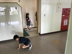 昼休み後の清掃時間,5年生が黙々と熱心に床拭きをしていて,階段や廊下がピカピカになっていました