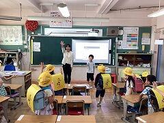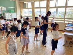 昼休みロング,4年1組で軽快にダンスを踊っている二小ちゃんたちが3・4年生ダンスリーダーの児童が,運動会で踊るダンスの練習に取り組んでいました