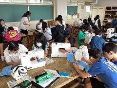 先日の5年生のミシン実習に続いて,今日は6年生のミシン実習ですさすがは6年生,5年生で学習した記憶を頼りに,友達と協力して教え合いながら作品制作に励んでいました