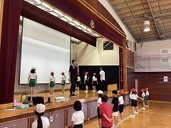 飯田校長先生からは,学校生活の「さしすせそ」について振り返り,その反省を後期に生かしていこう!というお話がありました。最後にみんなで校歌を元気に歌い,全校集会を終えました。