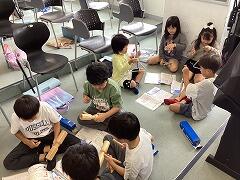 エアコンの効いた涼しい図書室や教室内で過ごしている子も結構多いですね。6年生は卒業アルバム実行委員の児童が,編集作業に集中して取り組んでいました