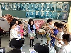 同じフロアの音楽室では,2年生が打楽器を使ったリズム作りに取り組んでいました。トライアングル・タンバリン・ギロ…などなど,いろいろな音の重なりが楽しいですね