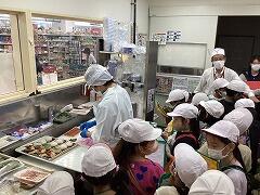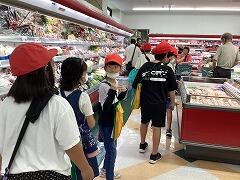 3年生が社会科見学でスーパーマーケットへ行ってきました。今回ご協力をいただいたのは,二小ちゃんたちなら一度は行ったことのあるスーパー,ランドローム大津ケ丘店です。店長さんが,普段お客さんとしては入ることのできないバックヤードを説明しながら案内してくださいました