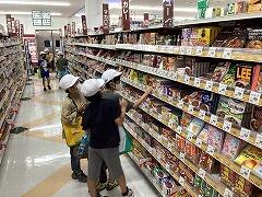 店内の見学と併せて,お買い物体験も予算300円以内で,あらかじめ家の人と相談して決めた商品をレジで購入しました
