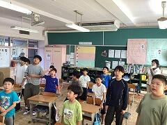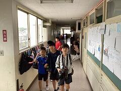 避難してから安心してしまったのか,人数確認中の「しゃべらない」が徹底できなかったので,訓練終了後に各教室で反省・振り返りを行いました。自らの命を守るために必要なことなので,みんなで意識を高めていきましょう