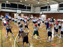 ステップを踏んだり,腕を伸ばして決めポーズをしたりと,覚えることがたくさんありますが,みんなノリノリで楽しそうです