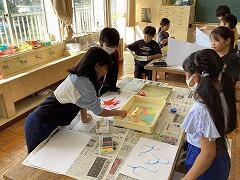 4年生は図工でマーブリングを,3年生は国語「わすれられないおくりもの」の感想発表会を行いました
