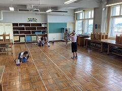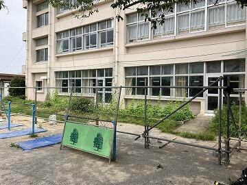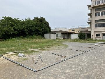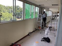 学童ルームの校舎内への移設工事が夏休み中に行われるため,土曜日に,工事現場事務所を設置するための仮囲いを立てる作業が行われました。