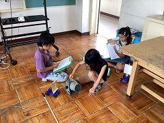 3年生でも,理科「風やゴムのはたらき」の実験を,エアコンの効いた図工室で行いました