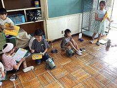 図書室で夏休みの貸し出し本を返却したら,もう下校時刻です。今日は移動交番来校日,柏警察署の皆さんが二小ちゃんたちの下校を見守ってくださいました子どもたちの安全のために,ありがとうございます