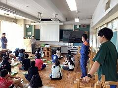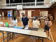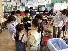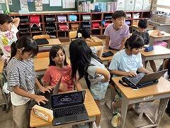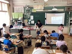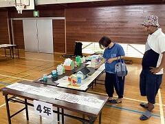 教室での授業はもちろん,1年生は校庭に出て生活科の学習,4年生は夏休みの作品を体育館に持ち運んで,明日からの「校内夏休み作品展」の準備です