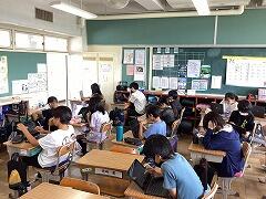 今日も暑~い1日でした熱中症予防のためにも,エアコンが効いた部屋での活動がマストとなるので,2年生の校外学習事前説明は図書室で行いました