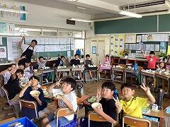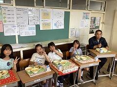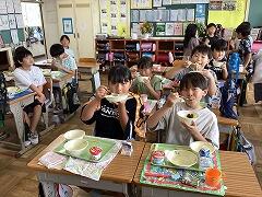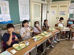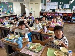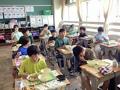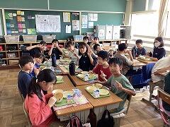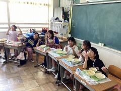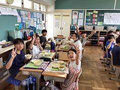 1学期最後なので・・・担外の先生をお招きして一緒に食べたり,机を円形に並べたりと,スペシャル給食の時間になりました