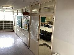 1階西側の旧児童会室・旧ニコッピが「大津二小こどもルーム」に転用されるため,そのための工事が1学期末から始まりました。3・5・6年生昇降口から階段に向かう廊下が狭くなっているので,通るときは注意が必要です夏休み期間に入り,音が出る大がかりな工事が急ピッチで進められています