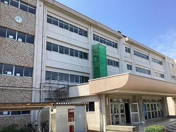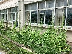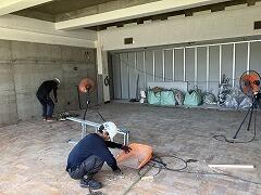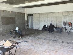 外から見ると,これまでと何ら変わりありませんが…中をのぞいてみると,天井や床板,黒板などが撤去されてコンクリートがむき出しになっていました作業員の皆さん,暑い中ご苦労様です