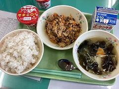 1学期の給食も今日で最終日です夏野菜のキーマカレーライス・フルーツ寒天・小魚・牛乳をみんなでおいしくいただきました