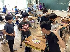 消しバト(消しゴムバトル)に熱中する3年生2年生は、いよいよ来週に迫ってきたアンデルセン公園への校外学習の実行委員やレク係の児童が打ち合わせをしていました
