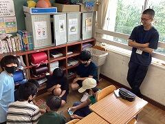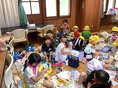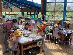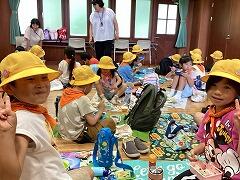 は,午後の屋外での活動に備えて涼しい室内で行いました。美味しいお弁当,ありがとうございます