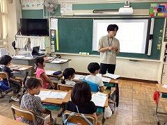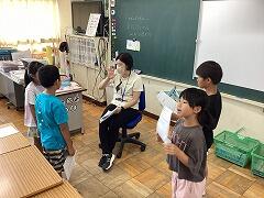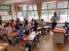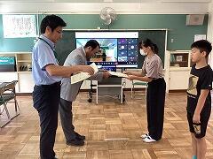 続いて,たんぽぽ2組・5年・6年の代表児童が「1学期に頑張ったこと」を発表しました。また,夏休みの生活について生徒指導主任の岩﨑先生からお話があり,最後に校歌を元気に歌って終業式を終えました。