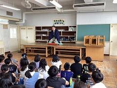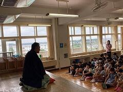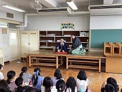 今年も落語家の三遊亭圓福さんをお招きして,4年生で落語教室を行いました。国語で落語「ぞろぞろ」の学習をしましたが,プロの噺家さんの「生落語」の臨場感に,子どもたちも聴き入っていましたまた,圓福さんの羽織りを着させてもらったり,扇子や手ぬぐいといった小道具を使った演じ方を教えていただいたりと,充実した時間となりました