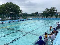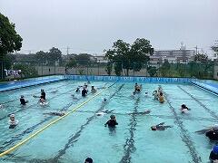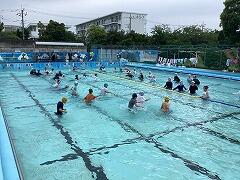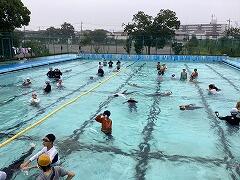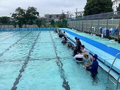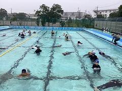 午後には6年生の着衣泳も実施しました。万が一の水難事故に備えて,衣服を着用したままの泳ぎづらさを体感し,救助を待つためのペットボトルを使った浮き方を学習しました。