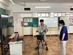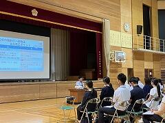3・4・5校時に,柏市役所防災安全課の渡辺さんをお招きして,交通安全教室を実施しました。体育館が蒸し暑く,熱中症予防のためMeetをつないでオンラインで行いました。