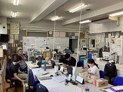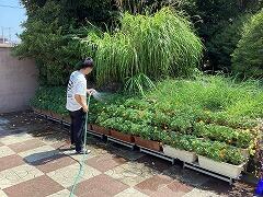 学校は,学童ルーム移設工事だけでなく,その他の工事や点検作業も,この夏休み期間で行われております。出勤の職員は少なく,とても静かな職員室です。今日は5・6年生の先生方が打ち合わせをしていました事務の加藤さんは,日直の仕事で水やりです