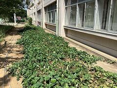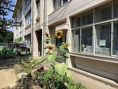 花壇のひまわりやアサガオ,2年生のサツマイモ畑も,夏の日差しを浴びて元気に育っています