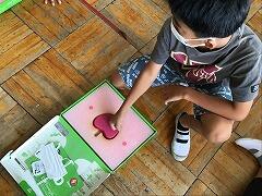 さくらんぼ・たんぽぽ学級の教室で,ロング昼休みに「さくたん祭り」が開催されました的当てや魚釣りゲーム,くじ引きなど,さく・たんの子どもたちが各コーナーを担当して,ご招待した先生方をおもてなししました