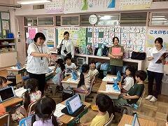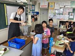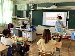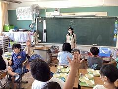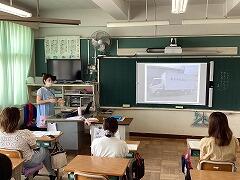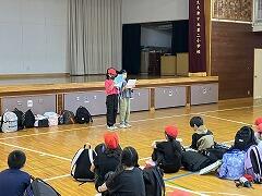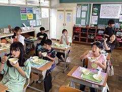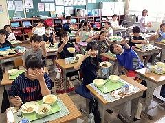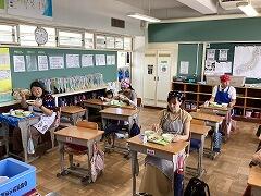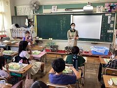 食べ終えた後には,いつもお世話になっている給食センター栄養士の柴沼先生の食育講話がありました。また,同じく栄養士の落岩先生は,二小ちゃんたちが食べている時に教室を回って,今日の献立についてお話ししてくださいました。