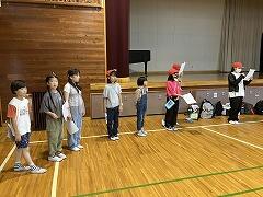 5年生がいよいよ手賀の丘青少年自然の家へ出発します小雨が降っていたため,実行委員による出発の会を体育館で行いました。4年生のみんなが見送りに来てくれました